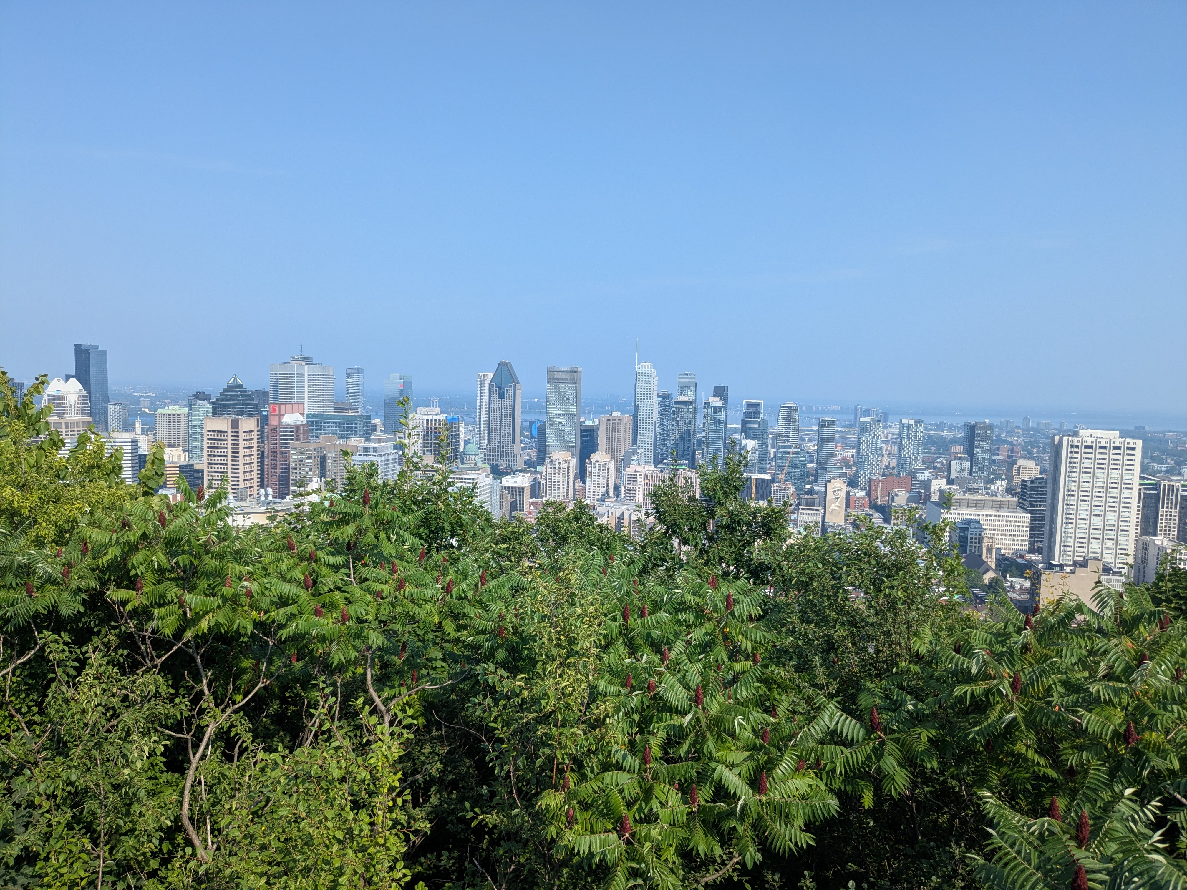 With the hard work out of the way, I had two more days at the conference and to enjoy Montréal. I continued going to interesting sessions throughout the day and sampling meals and delightful poutines at the numerous business centers of the city before the Wednesday afternoon excursion. My body was still in pain from the bike ride, but it also felt clear that if I didn’t start to move again that I would only recover more slowly. I joined a group of students for a short hike up Mount Royal from the McGill campus, up dozens of stairs until we could finally see the fancy Montréal skyline. A friend, Ewen, and me took a respite from the muggy heat by eating mango popsicles before continuing the hike back down the hill.